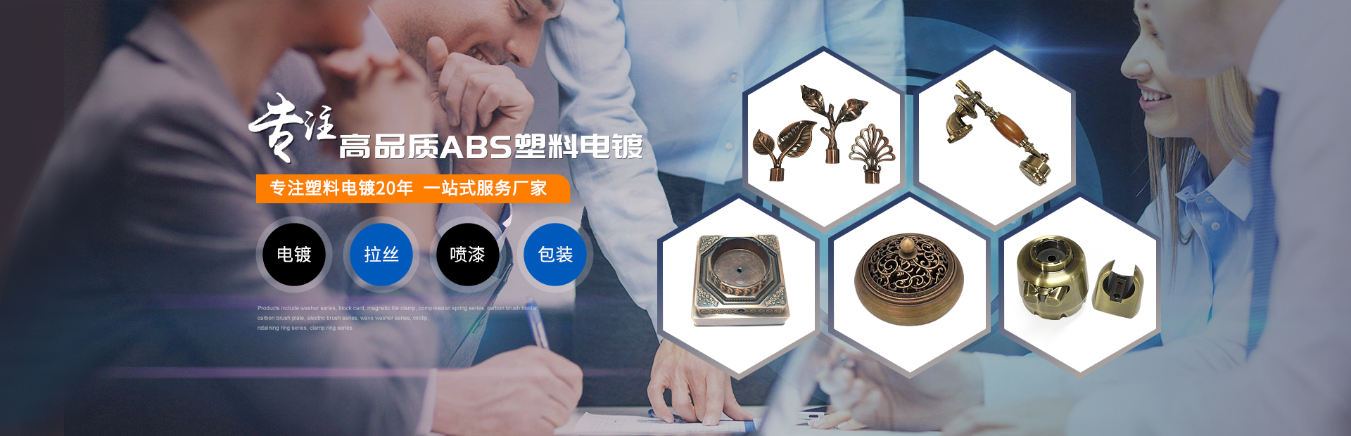 本廠專門從事高中檔[ABS]塑料電鍍,現擁有二條全自動塑料電鍍流水線,二條自動烘干烘道,以及前處理車間、拉絲車間、噴漆車間、包裝車間等多個配套車間。可從鍍前處理、電鍍、拉絲、噴漆、包裝、成品出庫、送貨上門、物流托運,為每位客戶提供一站式便捷服務.....